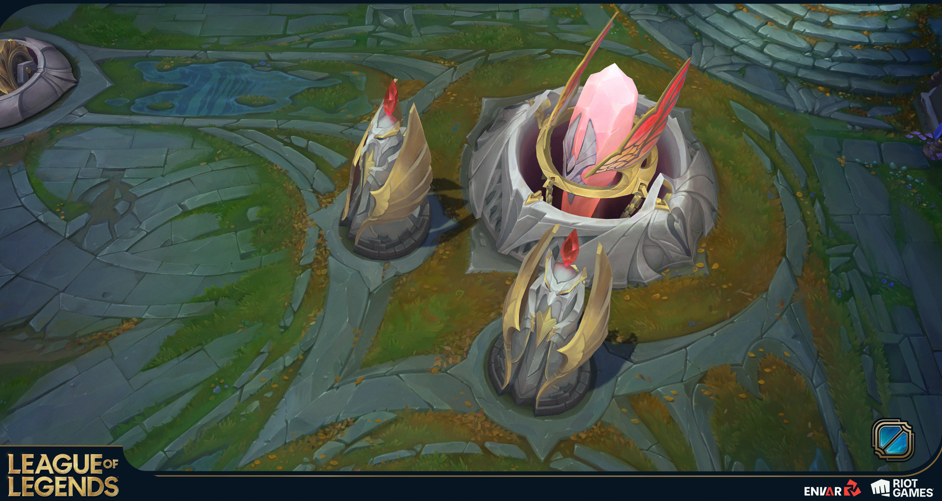 Envar had the honor to collaborate with League of Legends and Riot Games on the Demacia-themed Summoner's Rift map! This collaboration has been a true joy and a wonderful journey from start to finish. We worked alongside the awesome Summoner's Rift team, and the final result turned out even better than any of us imagined. Throughout this close-knit collaboration, we gave Demacian elegance to the Summoner's Rift. Our primary focus was on the Gameplay structures, Shopkeeper north, south Shopkeeper (skin weights), Chaos and Order base Ground Textures, and many of the props seen all across the map. Seeing everything come together was a highlight. The team’s passion made the entire process exciting and full of hype. A huge thank you to everyone involved for such an inspiring and rewarding partnership.
